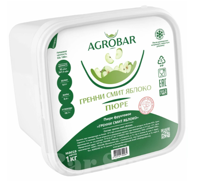 Каталог/Сиропы, пюре и продукты/Пюре, основы для коктейлей и концентраты 4491 Концентрат Яблоко Смит 1кг АГРОБАР